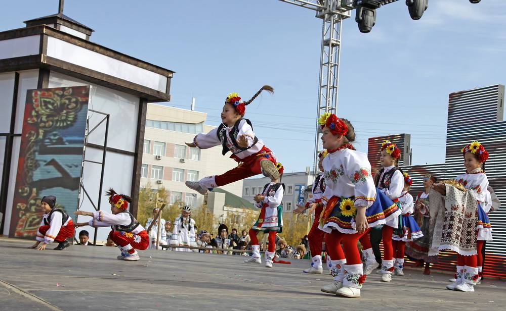После мы поприветствовали всех на их родном языке. Так фраза "Добрый вечер" прозвучала от нас на 13 языках, что вызвало яркие эмоции и аплодисменты со стороны каждой из делегаций. Потом все с большим удовольствием станцевали с нами русские народные танцы "Калинка" и хоровод. Мы рассказали и о нашей родной национальной республике, где чем холоднее погода, тем горячее сердца, а богатством наполнены не только недра земле Олонхо, но и ее национальная культура. Ярко, с удовольствием и дружно научили всех танцевать "Якутские узоры" и осоухай. Закончили свою презентацию современной композицией всемирного танцевального марафона "Танцуй добро", а под звуки песни "Вперед, Россия!" сделали финальную картинку с флагами России и Якутии. Наша презентация "дышала" патриотизмом, широтой души и дружелюбием. Многие гости это почувствовали и отметили.